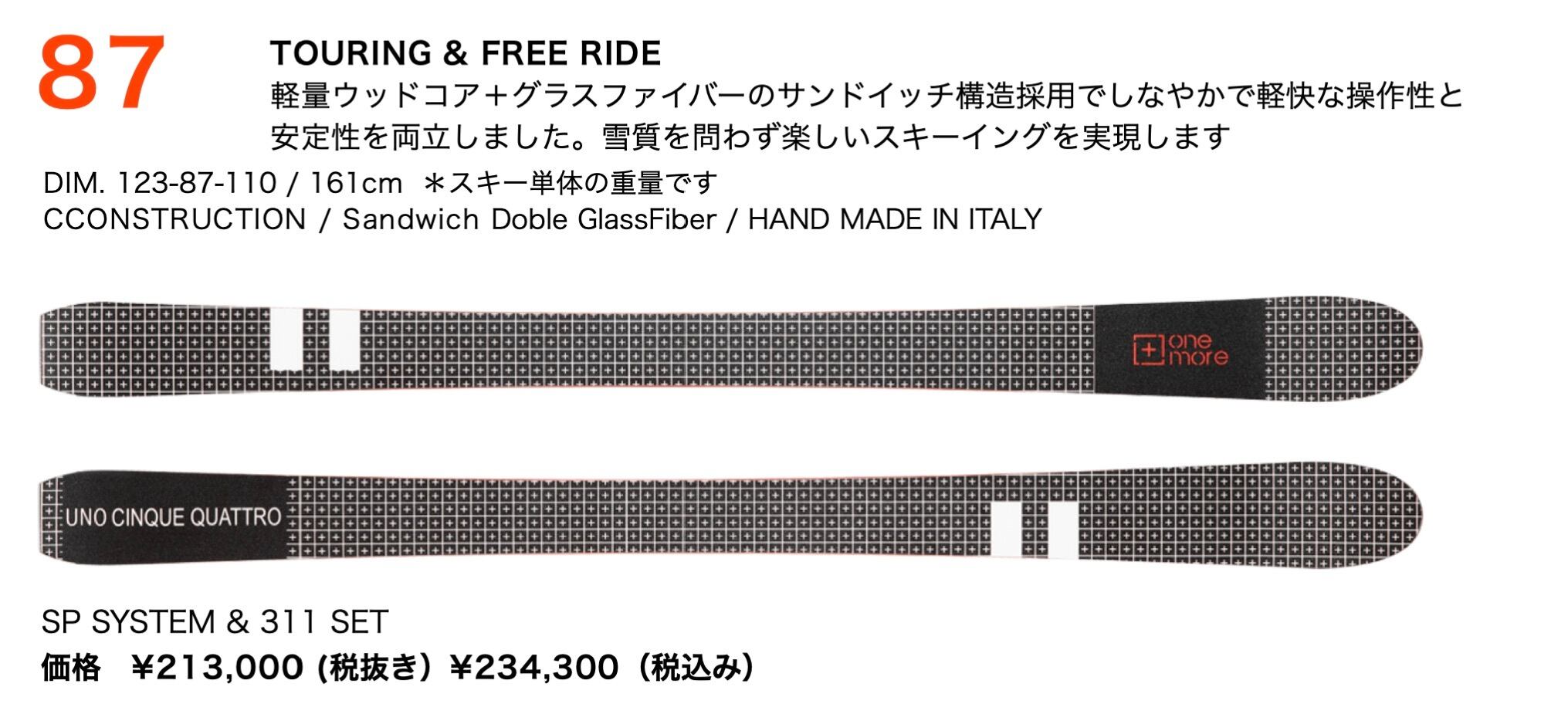 23 -24モデル / OneMoreSKI / TYPE 87 「軽量ツーリング&パウダー」 with speed system 311「HOT WAX 施工付き」