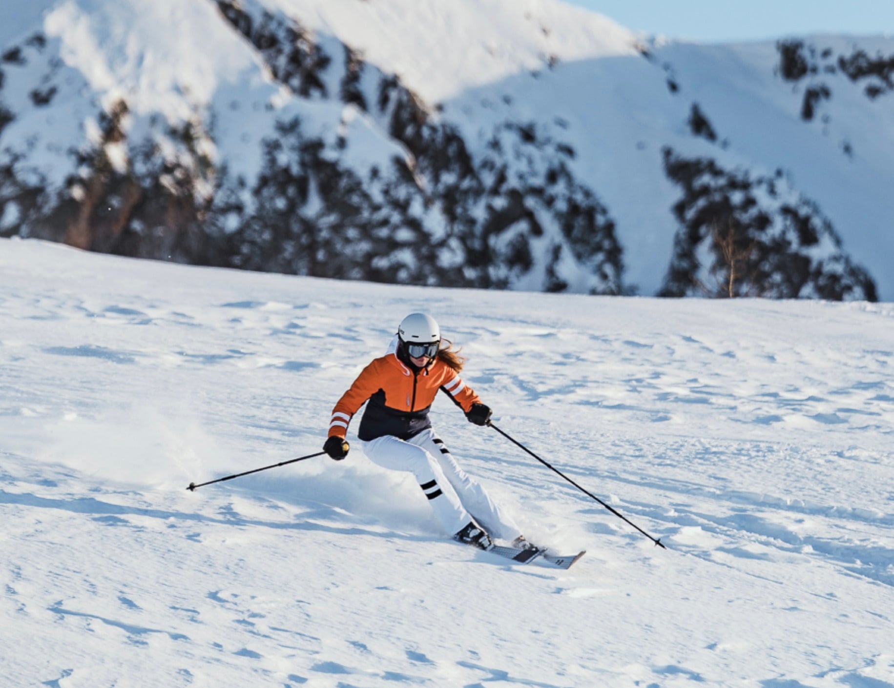 ●軽量ウッドコア+グラスファイバーのサンドイッチ構造採用でしなやかで軽快な操作性と安定性を両立しました。雪質を問わず楽しいスキーイングを実現します